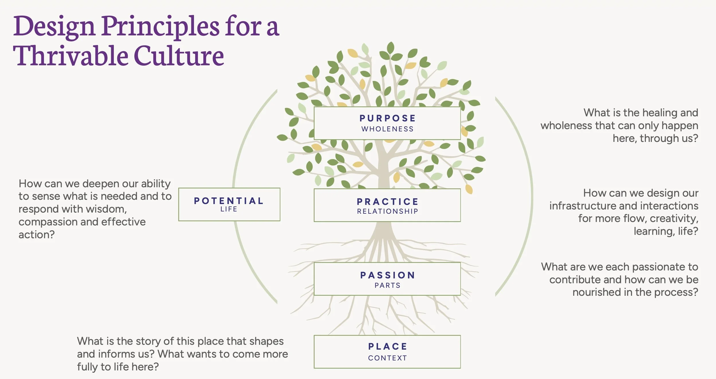 Michelle Holiday’s design principles in the model above have helped us see more layers and become more conscious about them in our work.